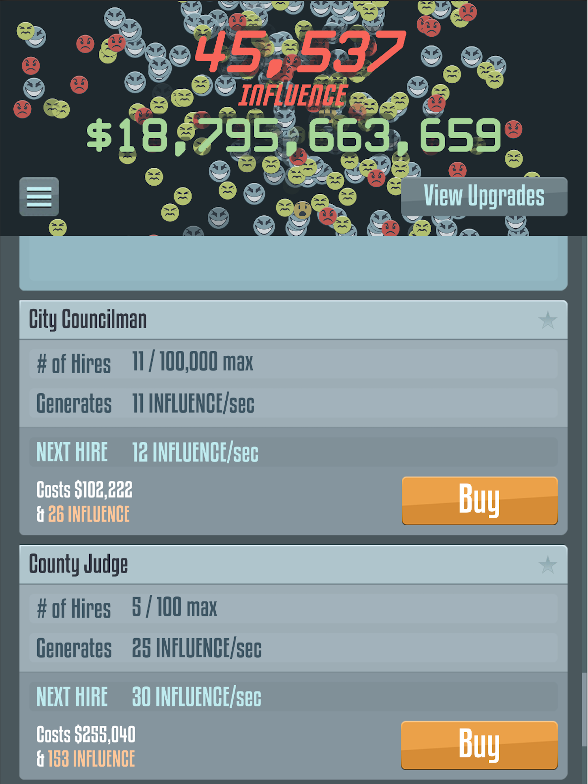Troll Farm is a political satire idle game in which you begin by posting your political messages to a not-at-all-based-on-real-life site called Squalk and escalate until, well, you'll have to find out.